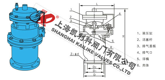 QSP全壓高速排氣閥由下閥體,中閥體,浮筒,浮筒桿,閥芯,蓋板,活塞桿,膜片及閥蓋等組成的全壓高速排氣閥,其特征是通過銷軸與浮筒鉸接的浮筒桿可繞主軸轉動,并由此實現通過浮筒升降控制閥芯的升降啟閉,即當浮筒下降(閥體里充滿氣體)時,閥芯上升,打開小閥口,并關閉小排氣帽上的排氣口,使氣體通過導管進入液壓罐內,當浮筒在浮力作用下上升時候,閥芯下降,關閉小閥口,同時打開排氣帽上的排氣口,使液壓罐通過導管,直通大氣泄壓,且當浮筒下降,液壓缸內充滿氣體時,閥門上的大排氣口自動關閉。當水泵停止,管內水流空時或遇到管內產生負壓時,吸入空氣,確保管線安全。