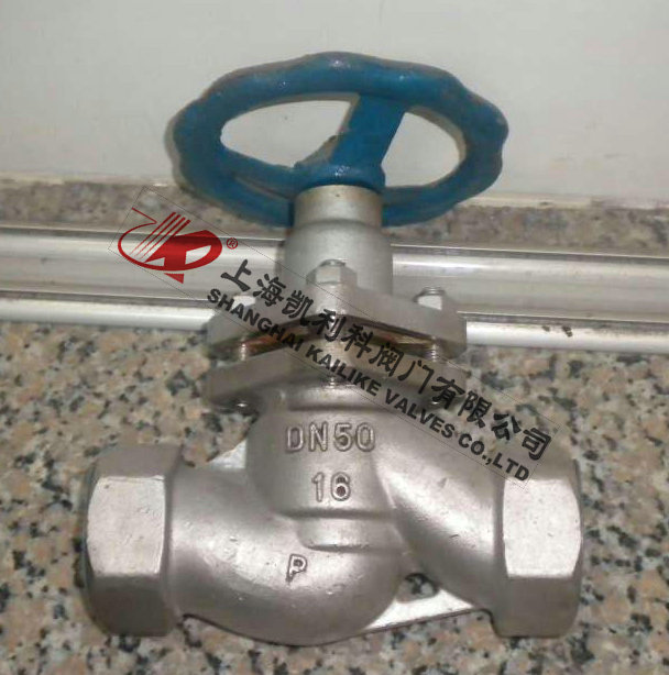 U11SM內(nèi)螺紋柱塞閥是由閥體、閥蓋、閥桿,柱塞,導向、密封環(huán)、手輪等零件組成。當手輪旋轉(zhuǎn)時,通過閥桿帶動柱塞在導向套中上、下往復運動,使柱塞端部斜錐面與閥座錐面完成閥門的開啟與關(guān)閉功能。