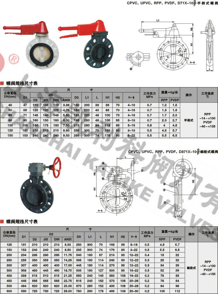 聲明:【UPVC塑料蝶閥】規格型號、結構尺寸由上海凱利科閥門有限公司提供,如何選擇適用的UPVC塑料蝶閥產品,使之在工藝控制中安全可靠、經濟適用,可致電我司銷售部門及技術部門,我們將在最短的時間內為您解答!