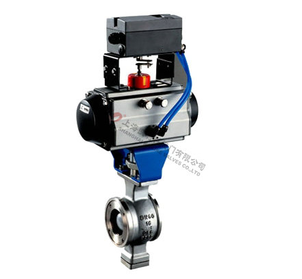 氣動V型球閥是一種芯閥座采用金屬,或金屬對聚四氟乙烯密封配合的旋轉球閥,它將球閥和蝶閥的最佳控制特性結合成一體,既可用作控制調節閥,又可作關斷切斷閥。球芯上的V形切口與金屬閥座之間具有剪切作用,特別適用于控制高粘度,含纖維、固體顆粒及漿料等介質。結構制造紙工業的紙漿顯得尤為優越。閥門的流通能力大、壓力損失小、且介質不會沉積在閥體中腔,閥門不僅具有近似等有分比的流量特性、可調范圍大,最大可調比為100:1,還具有精確調節與可靠定位的功能。