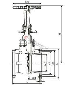 NK64H焊接式真空閘閥主要外形尺寸PN10.0MPa