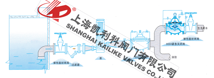 900X緊急關閉閥用于生活供水和消防供水并聯供水系統中,正常情況供生活用水,當火災發生時消防用水時,閥門自動關閉生活用水,確保足夠的消防用水。當消防停止用水時壓力減少,閥門自動恢復生活用水,該閥使系統無須另設專門的消防單獨供水管網,大大地節省了工程建設成本和日常的用水量。該閥控制靈敏、安全可靠、調試簡單、使用壽命長。